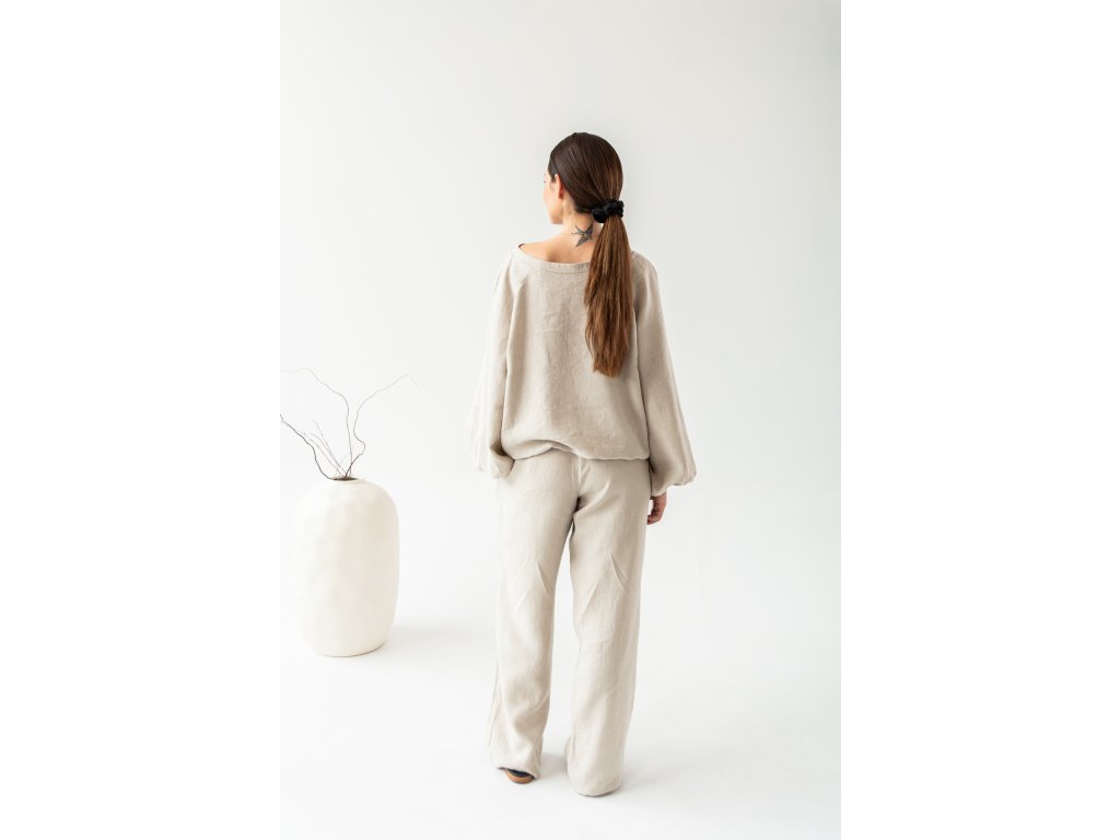 The long SOUL linen trousers are designed for women who seek naturalness, comfort, and a sense of calm in every movement