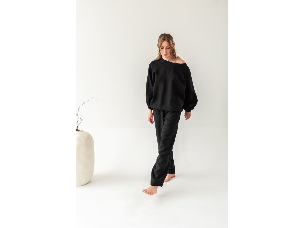 The loose fit with a higher waist is one of the key features of these trousers. It gently covers the abdominal area, adds a sense of confidence and feminine elegance, and allows you to feel relaxed and self-assured throughout the day. The wide, soft elastic waistband adapts to the body without constricting and supports comfort while walking, sitting, and resting.