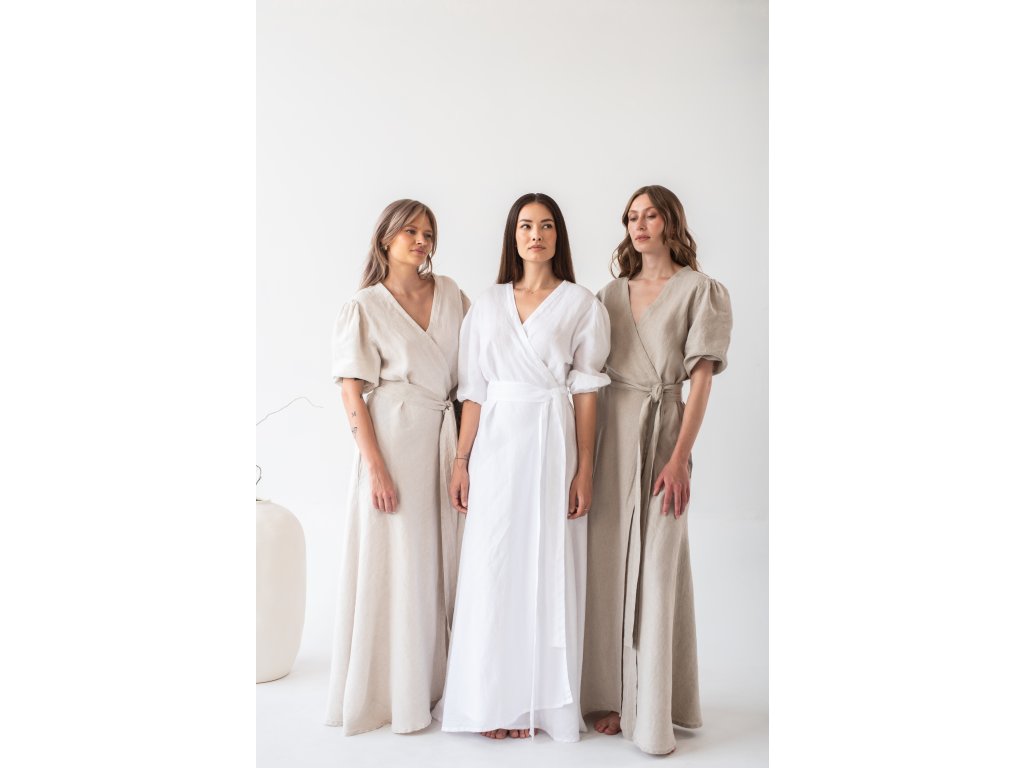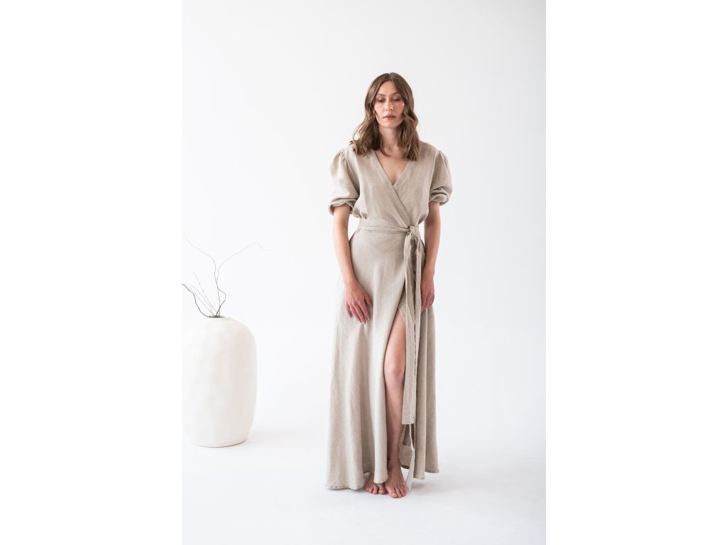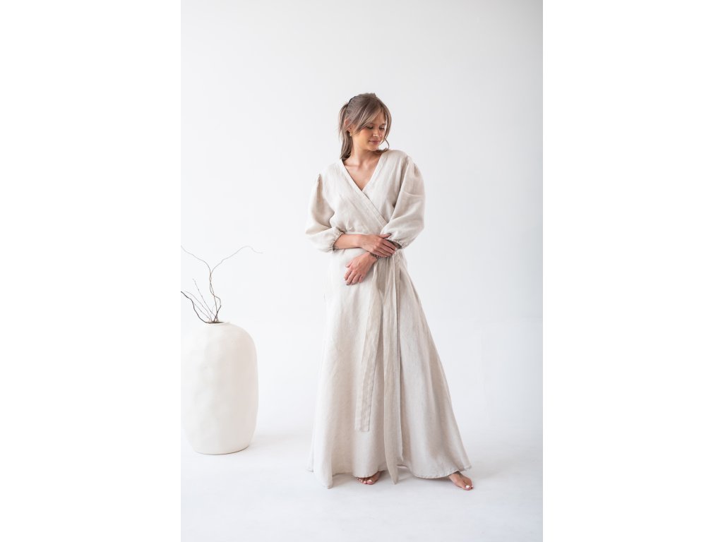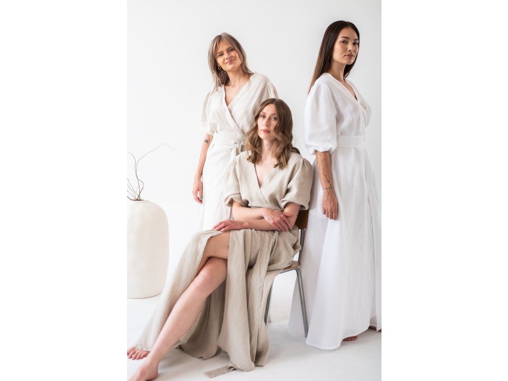Linen wrap dress is made from 100% fine, softened linen. Each linen piece undergoes additional softening, making the garment soft, beautifully drapey, and pleasant to the touch. You will love the breathable material on hot days.