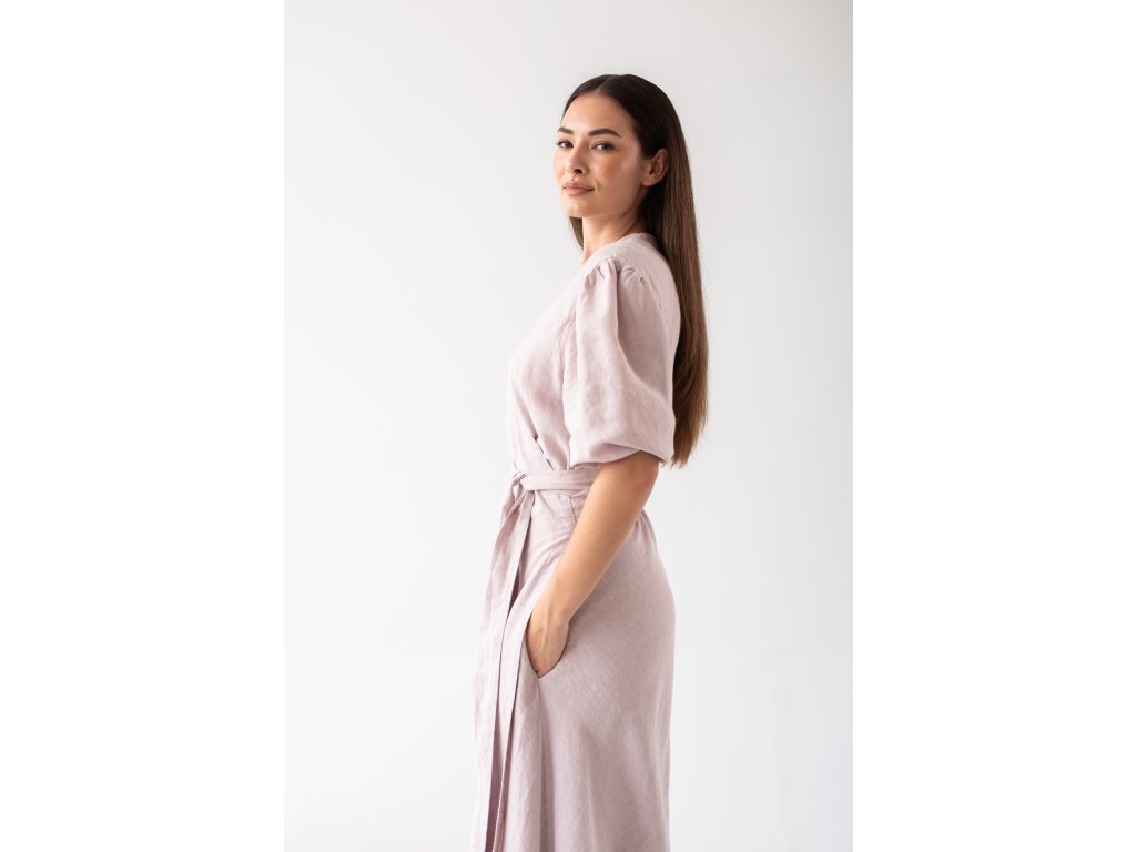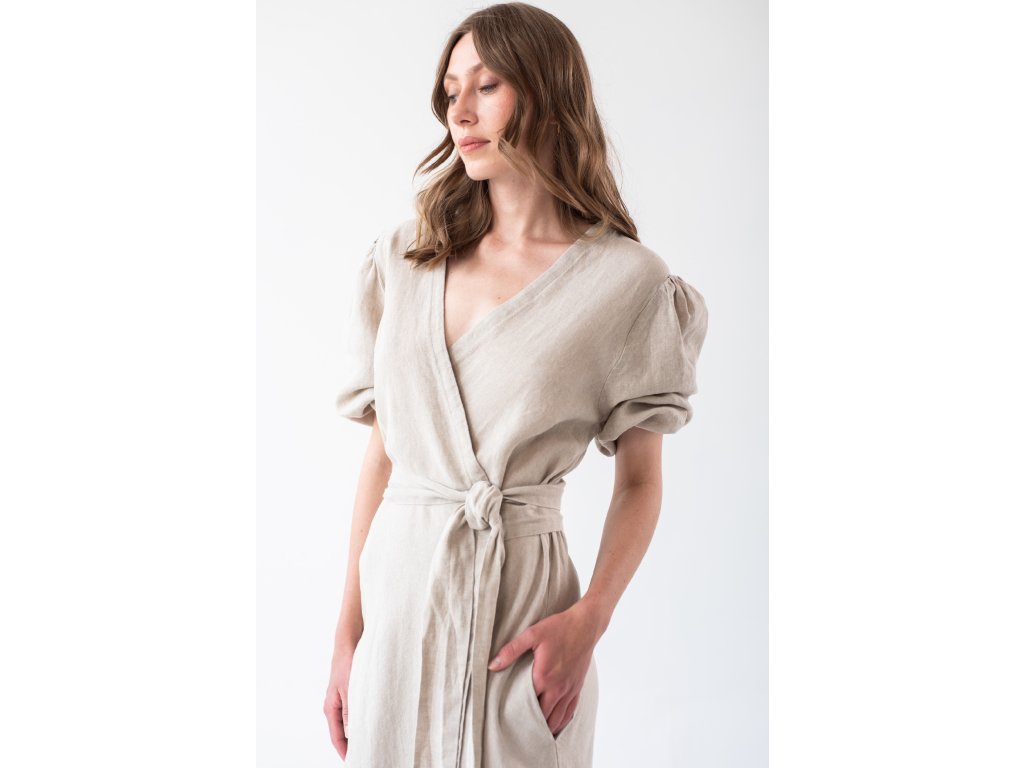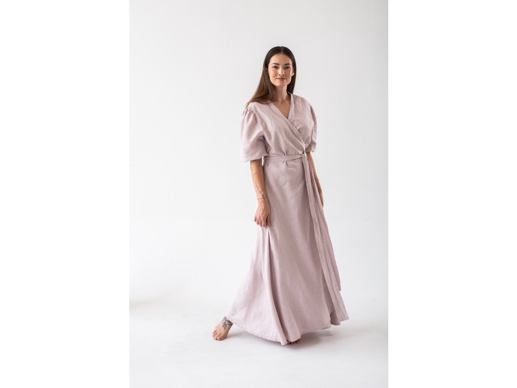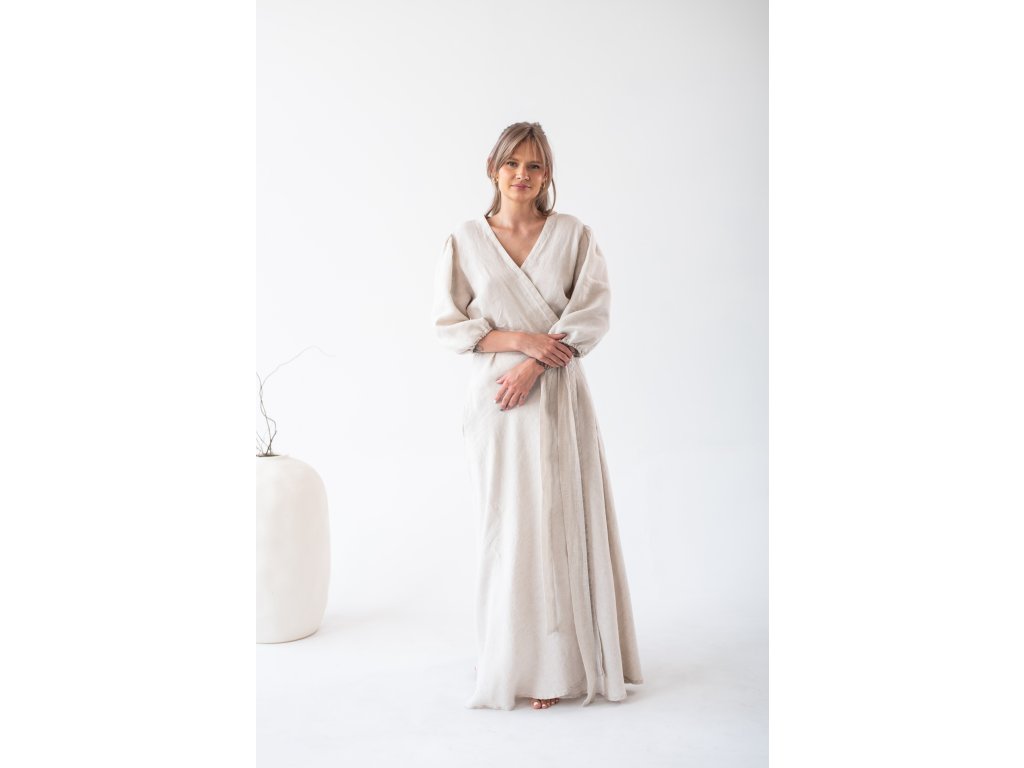 Linen wrap dress is made from 100% fine, softened linen. Each linen piece undergoes additional softening, making the garment soft, beautifully drapey, and pleasant to the touch. You will love the breathable material on hot days.
