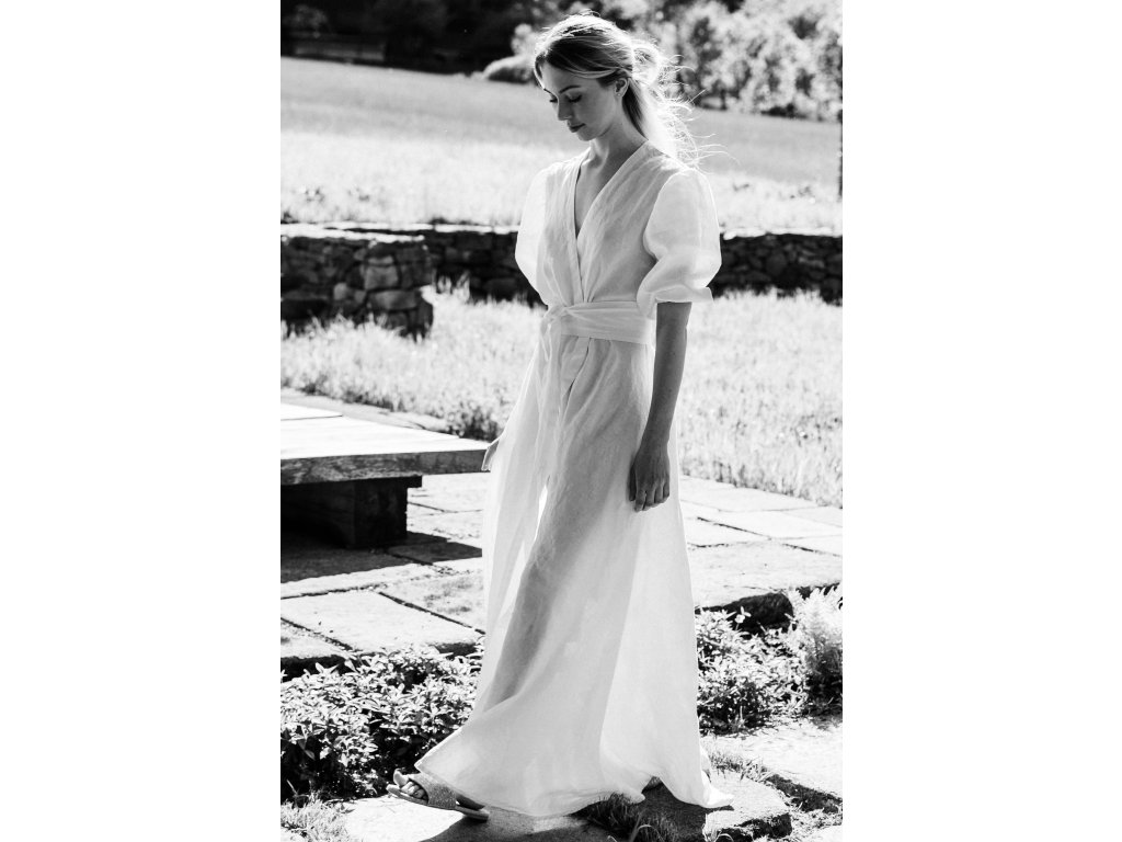 Balloon sleeves, approximately 40 cm long to the forearm area, are a timeless detail that adds gentle romance and a distinctive character to the dress. We recommend pushing the sleeves up slightly to create a softly voluminous effect.