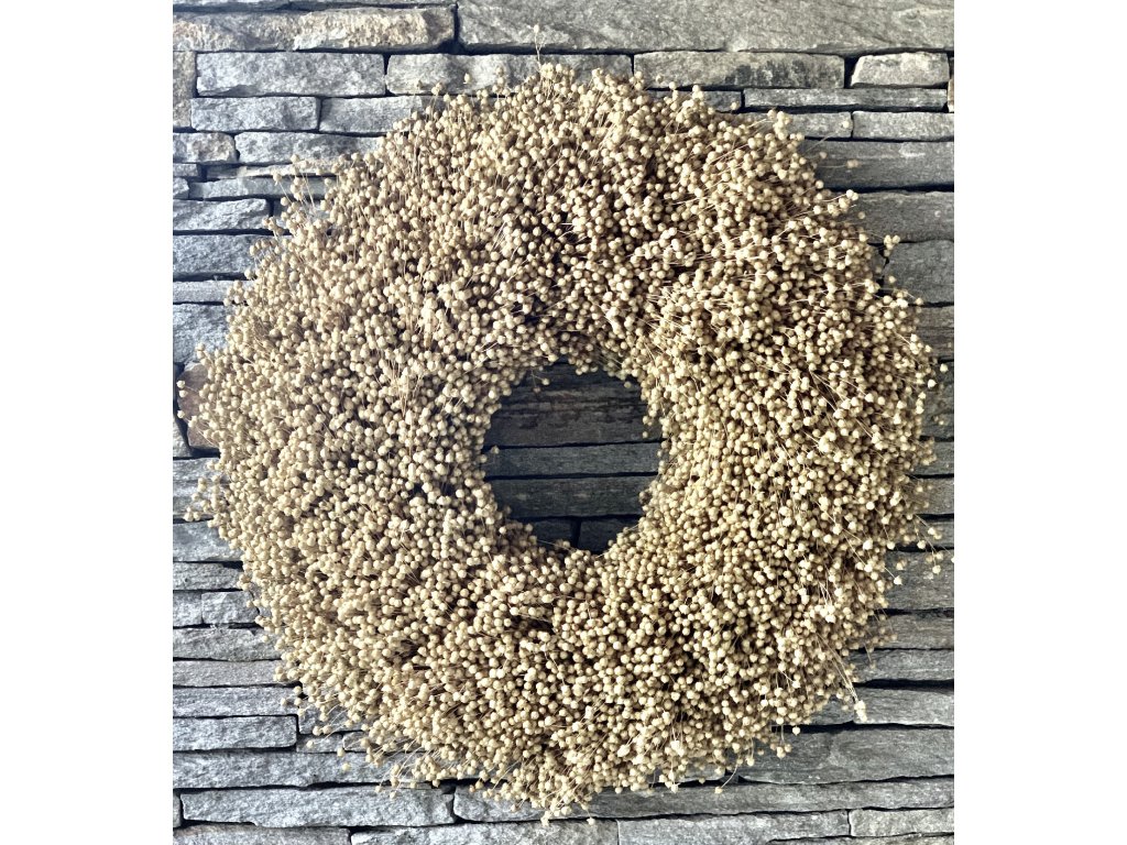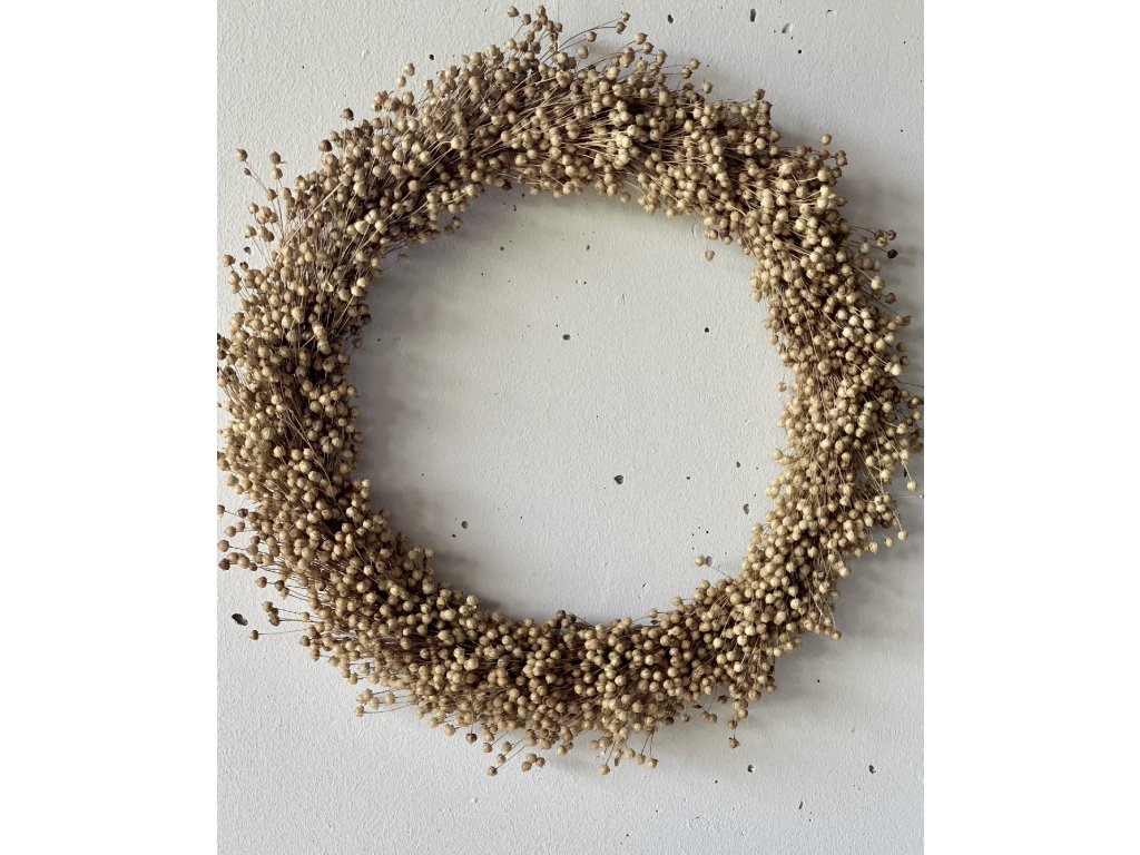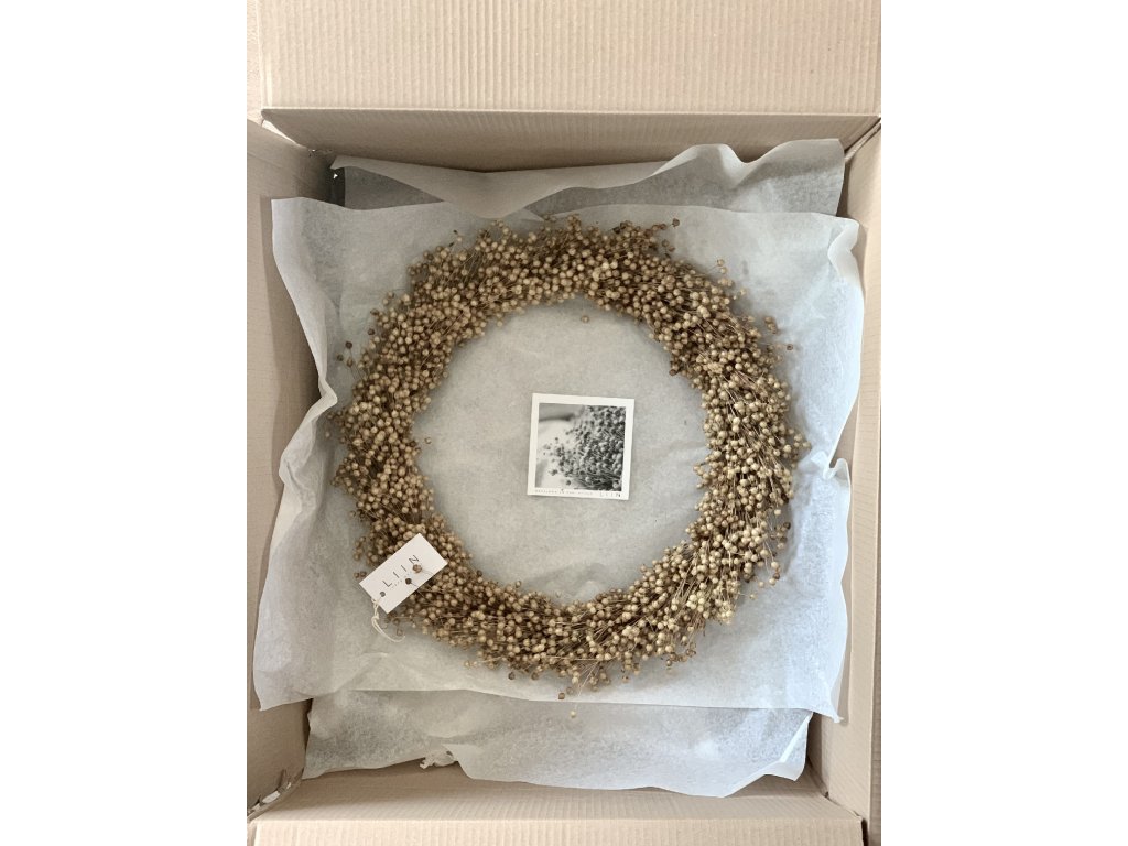 Lniany wieniec LIIN powstaje z suszonego lnu z czeskich pól i niesie w sobie cały jego naturalny cykl – od wiosennego siewu aż po ręczne wiązanie w naszej pracowni. Nie jest sezonowy, nie jest ostentacyjny. Jest ponadczasowy i prawdziwy.